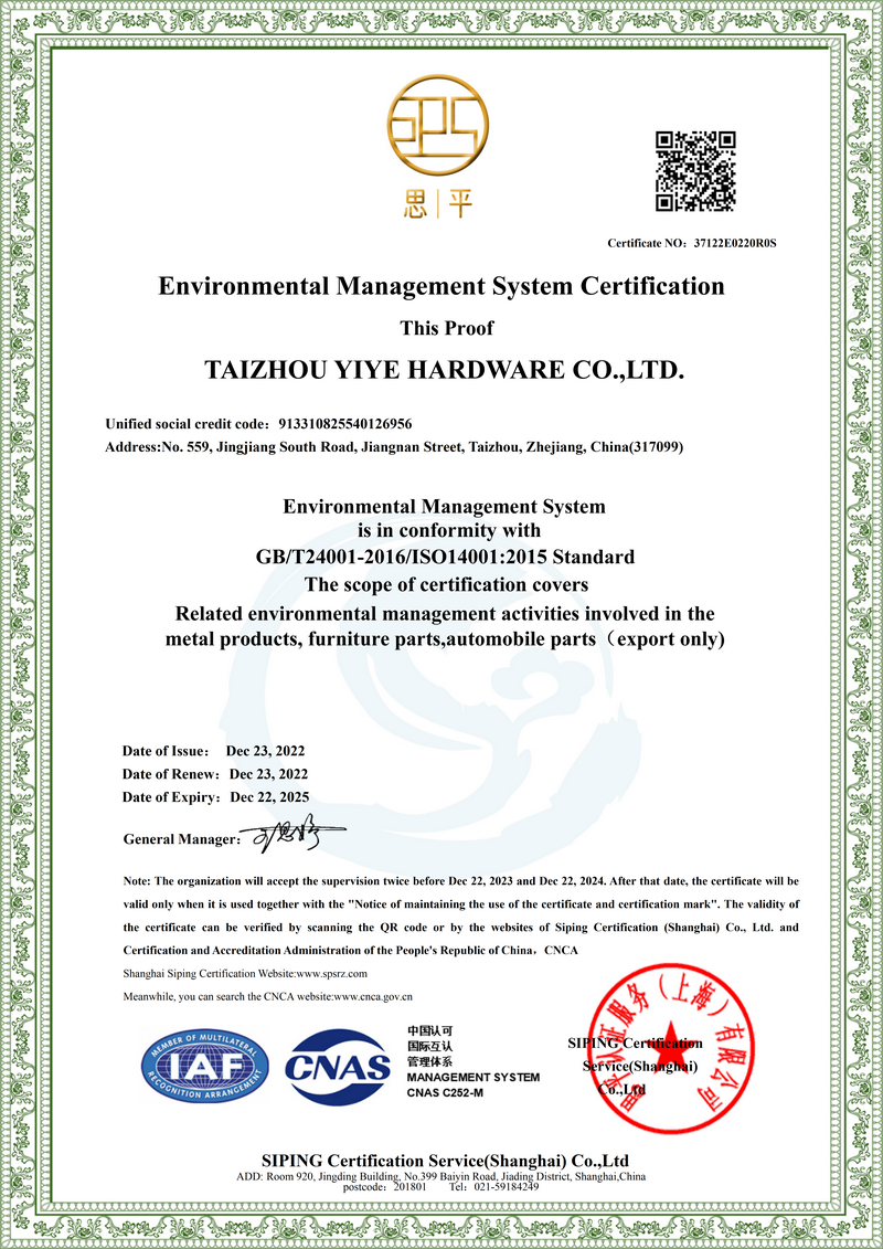 After all people's hard work,YeeYe have passed ISO14001 certificate.